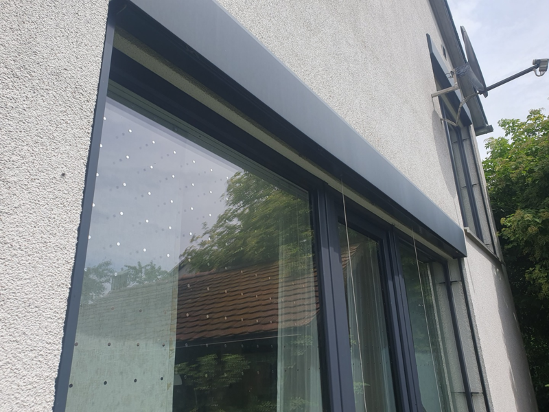 Die Anbringung dieser Vogelschutzpunkte ist bei kleinen Flächen relativ einfach. Sie werden entweder flächig als Folie oder auf einer Bandrolle geliefert.